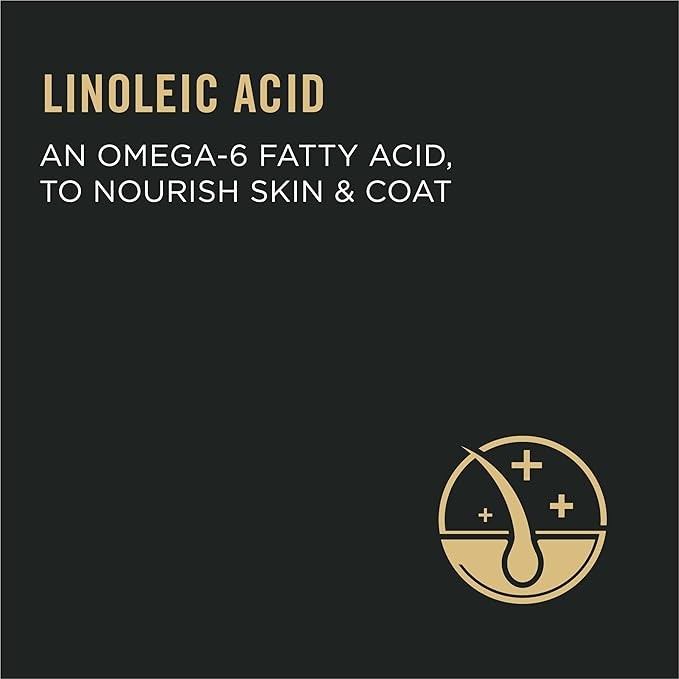 • Linoleic acid, an omega-6 fatty acid, helps support healthy skin and a lustrous coat